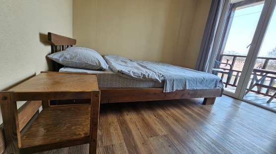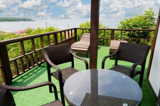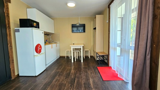 В номере: мебель, кондиционер, телевизор, холодильник, стол, стулья, кухонная зона, микроволновка, чайник, газовая плитка(баллоны приобретаются отдельно), посуда, шкаф, веранда или балкон.